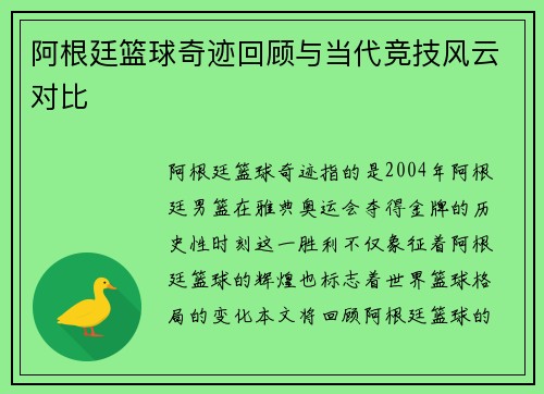阿根廷篮球奇迹回顾与当代竞技风云对比